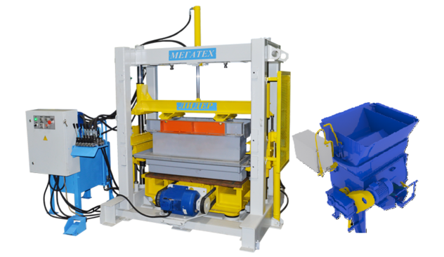 - вибропресс Мегатех-Лидер: рама вибропресса с вибростолом, с механизмом перемещения матрицы и пуансона;