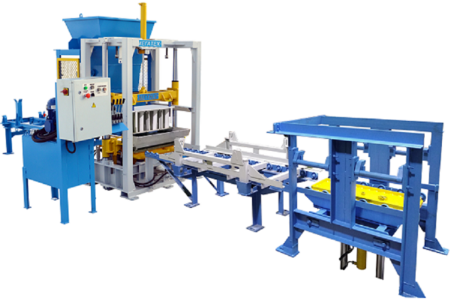 - автоматическая подача смеси из бункера в матрицу + разравнивание (это обеспечивает быстрый цикл формования, больший объем выпуска продукции); - автоматическая подача поддонов в зону формования; - автоматическое формование изделий. Временем формования управляет оператор пресса; - механизированная разгрузка технологических поддонов с готовой продукцией в зону вылеживания (при помощи погрузчика).